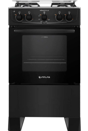 Fogão 4 bocas Atlas Mônaco Plus Preto com Acendimento Automático e Mesa Inox